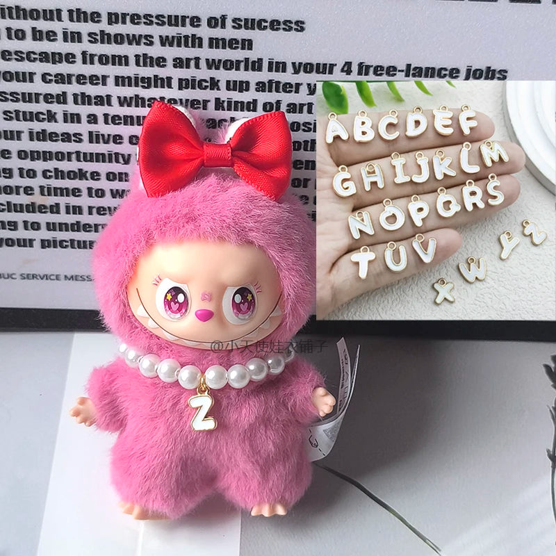 For Mini Labubu 4.0 Pin For Love Series Doll Clothes Accessories Mini Labubu Pendant Accessories Letter Pearl Necklace