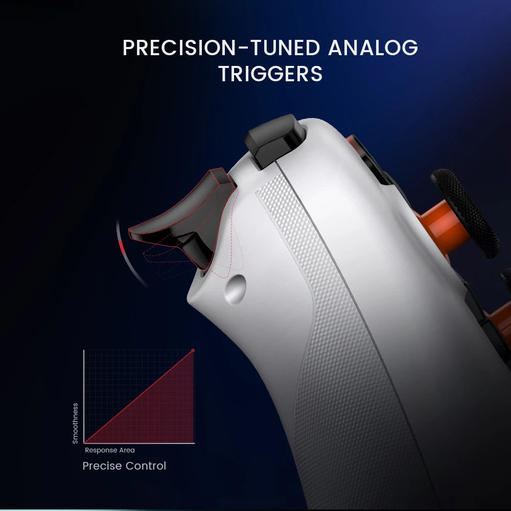 The controller supports multiple connection modes, including Bluetooth, wireless dongle, and wired USB connection. This allows users to switch easily between devices depending on their gaming setup or preference. Stable connectivity ensures low input latency, helping provide accurate control during fast-paced gameplay. The ergonomic design offers a comfortable grip, supporting extended gaming sessions without hand fatigue.